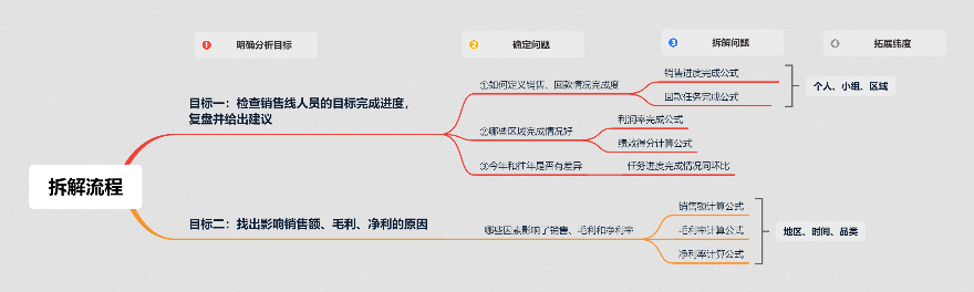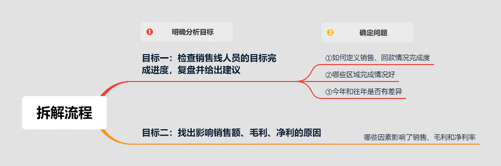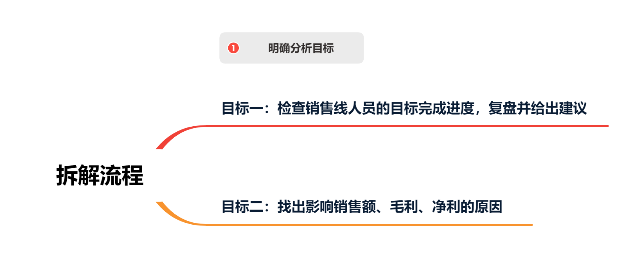 在明确分析目标后,就需要确定为了达成该目标,提出围绕该目标需要解决的问题。可以使用思维脑图,写出在看到该目标后产生的问题。